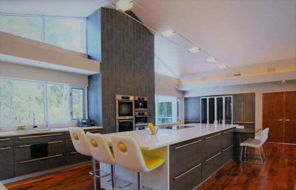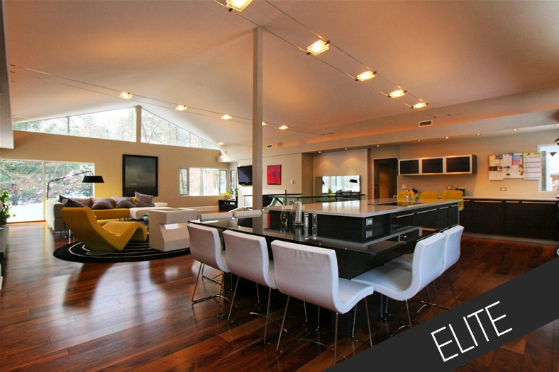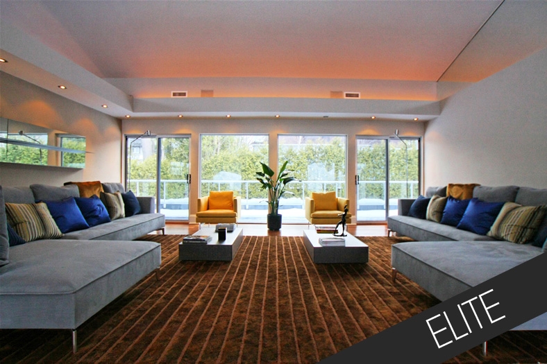 This hugely impressive contemporary property was chopped up into small rooms inappropriate for both the owners and the building itself. Working with the building contractor closely, we removed many internal walls to create a fantastic open plan family house, completely renovated with a bespoke kitchen, doors, lighting, bathrooms, gym and pool area. We shipped the lighting, furniture, and flooring to Canada from Italy and Spain. The project was entirely designed and managed by us from planning, to re-build, to fine details.